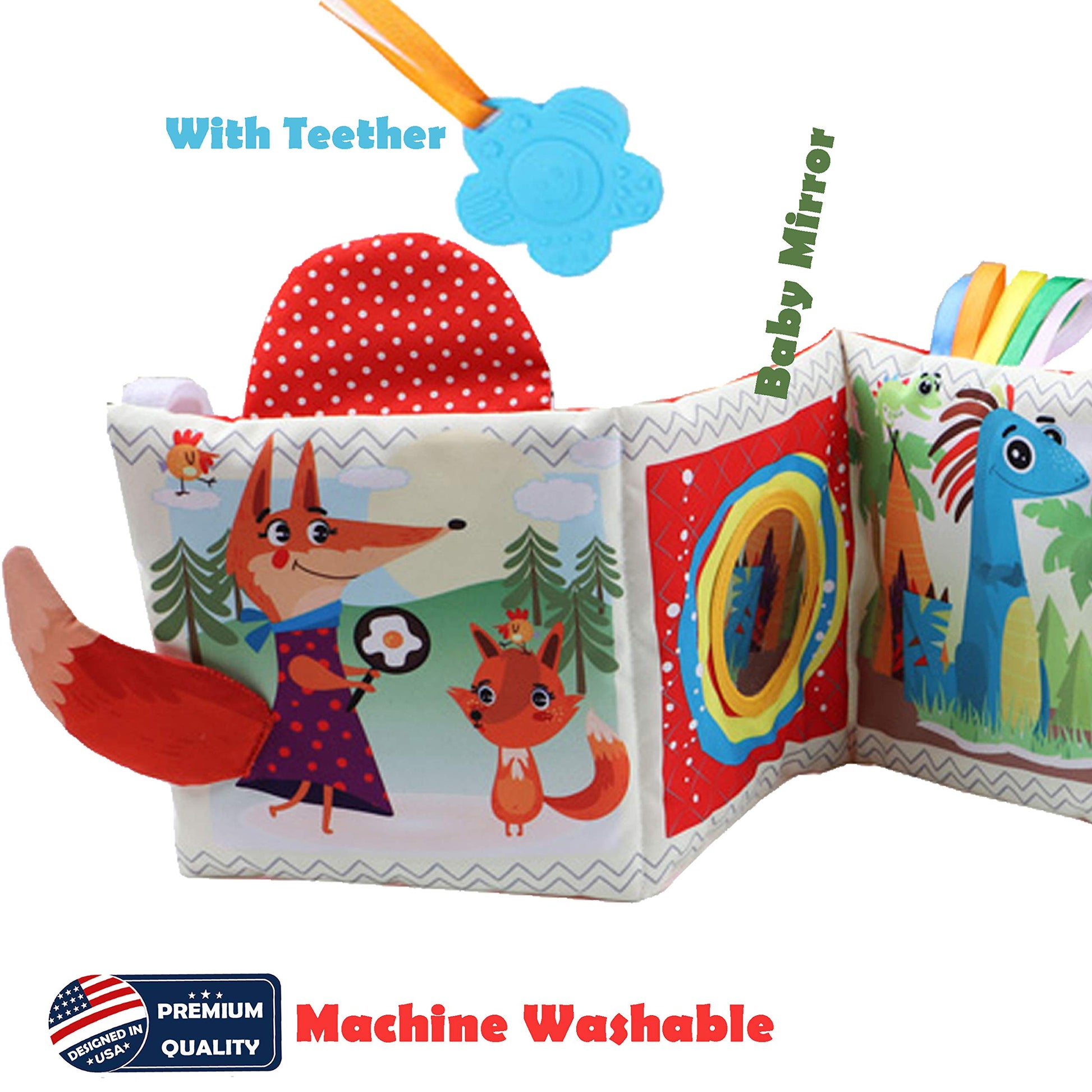 Details: Adorable & Thoughtfully Designed: This soft cloth book is the result of months of dedicated design work by our team. Every detail has been carefully crafted to create a unique and engaging experience for your baby. Two-Stage Developmental Toy: Perfect for infants from 0-6 months through 2 years and beyond, this book features two developmental stages. One side displays high-contrast black and white patterns to stimulate newborn visual development, while the other side offers colorful illustrations to engage babies 6 months and older. Ideal for tummy time, stroller rides, or car seat entertainment. Multi-Functional Features: This soft book includes a baby-safe mirror and teething toy to provide comfort and sensory engagement. It complements mobile toys, play gyms, baby activity centers, and can also be used with crib mobiles, baby doll beds, and car seats for versatile playtime. Premium Baby-Safe Quality: Made from non-toxic, washable fabric with sturdy stitching, our cloth book is safe for little ones who love to explore with their mouths. Durable and gentle, it's perfect for babies 12-18 months who are learning through play and sensory discovery. 100% Joy Guaranteed: At bebe mondo, your satisfaction is our priority. We're here to ensure you and your little one are happy with your purchase—always ready to help if you have any questions or concerns.
