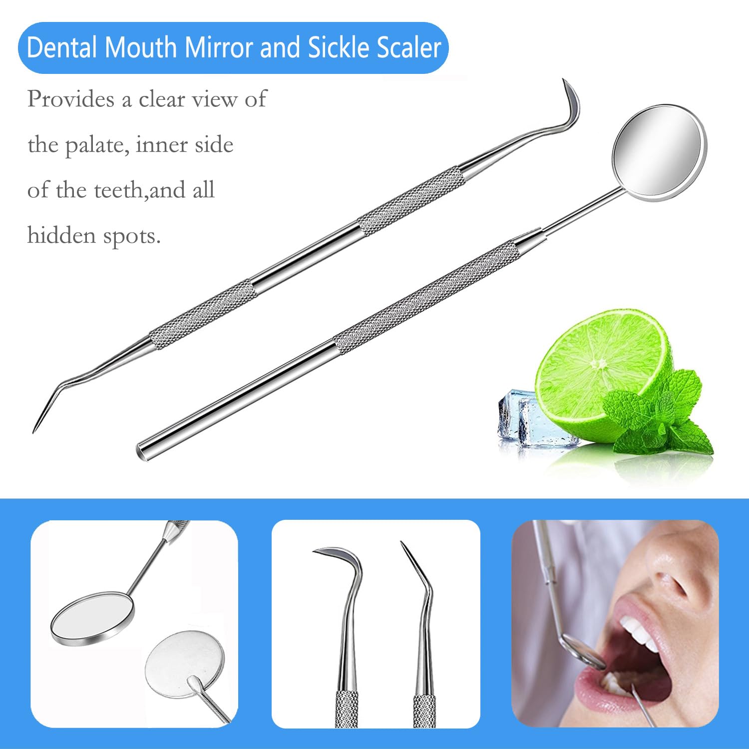 - ✅EASY TO USE - The dental pick oral care tools designed in different angles and shapes, with additional premium mouth mirror, good for cleaner tough oral stains,food debris, remove tartars between teeth and gums.