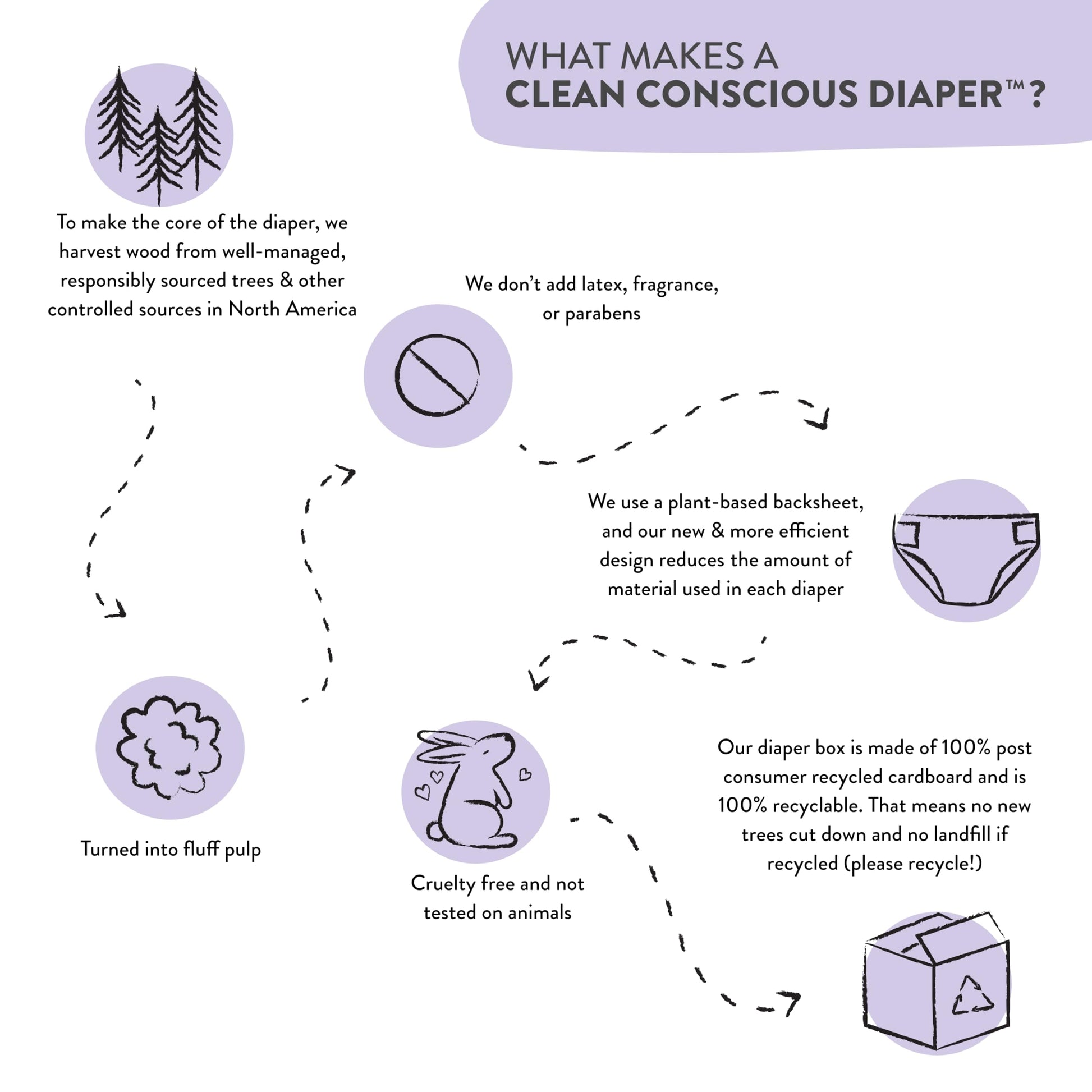 - Clean Conscious Overnight Diapers are designed with safe plant-based materials and sustainable fluff pulp that’s responsibly sourced from North America to reduce transportation carbon footprint and are now OEKO-TEX STANDARD 100 certified